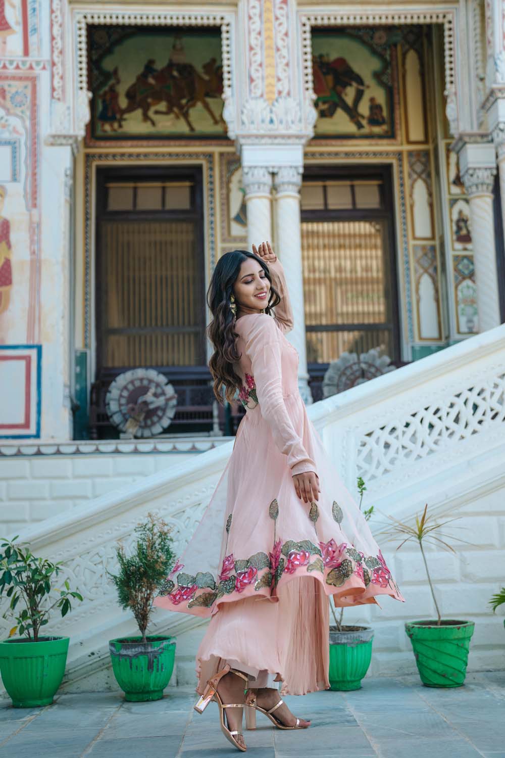 Saroj - Rose Gold Anarkali Pant & Dupatta Set
