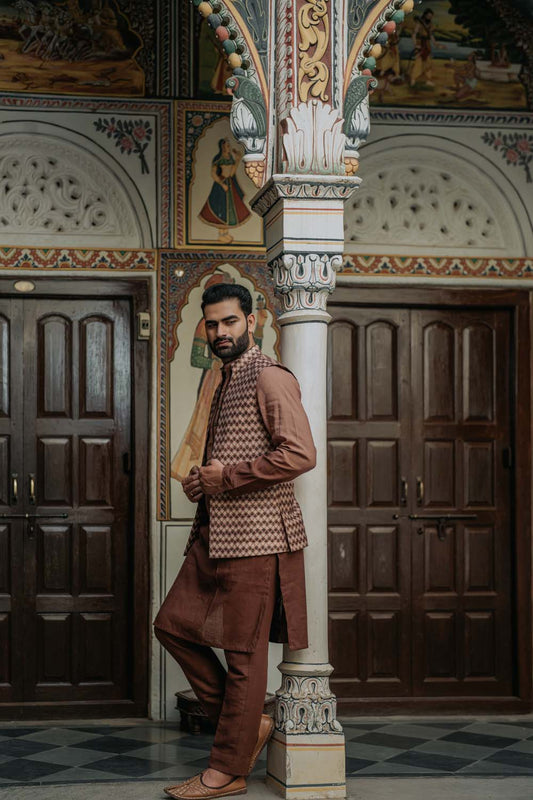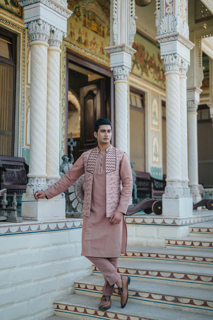Rajiv - Rose Gold To Brown Shade Kurta Pant & Jacket Set